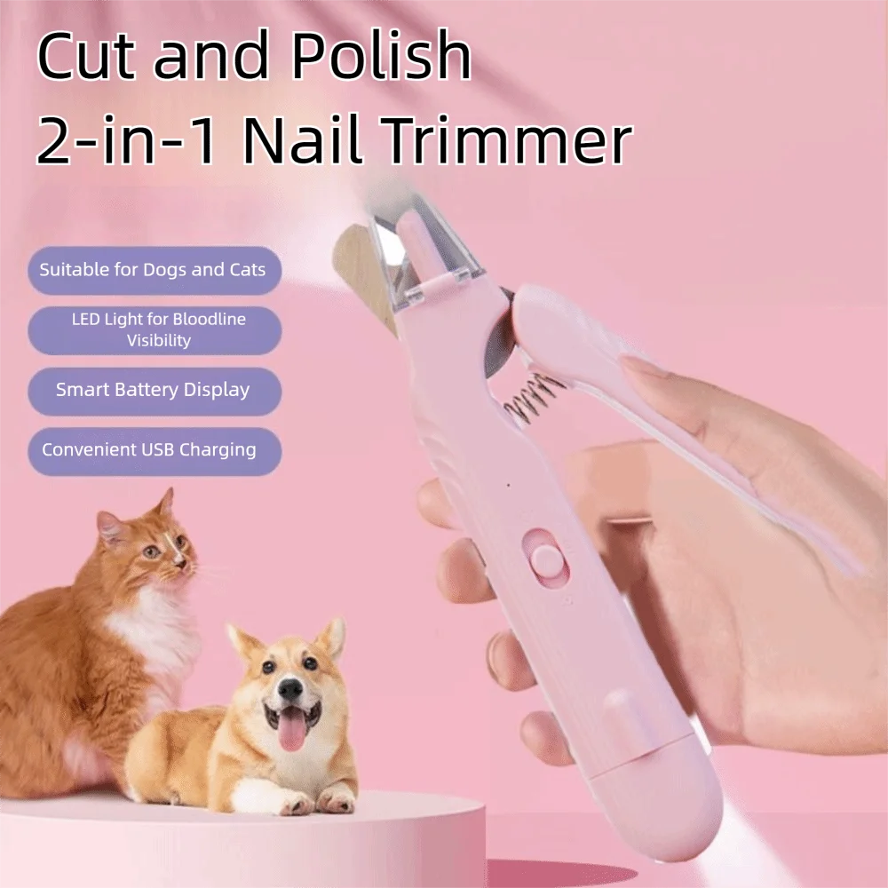 Answer 1: The 2-in-1 functionality allows you to grind and clip your pet's nails using the same device. This design combines efficiency and safety, enabling you to maintain your pet’s nails without switching tools. The built-in LED light helps minimize the risk of cutting too deep, ensuring your pet's nails are trimmed safely and comfortably.